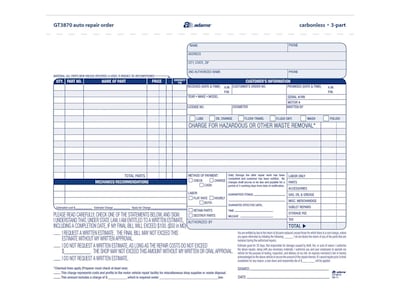 Document repairs efficiently with these three-part Adams auto repair forms.
