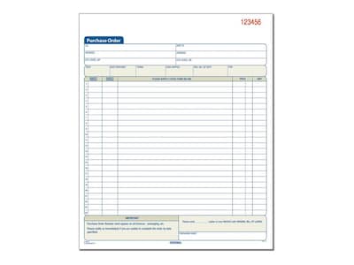 Stay organized with these carbonless purchase order forms. Each white original form produces one yellow and one pink copy, so every involved party can have a record of sales or services rendered. This book contains 50 consecutively numbered Adams three-part purchase order forms to help any business keep track of purchases in chronological order.
