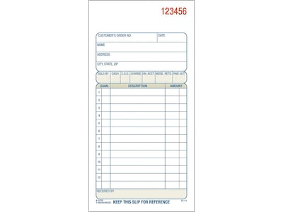 Adams 3-Part Carbonless Sales Orders, 7.19"L x 3.34"W, 50 Sets/Book (TC3705)