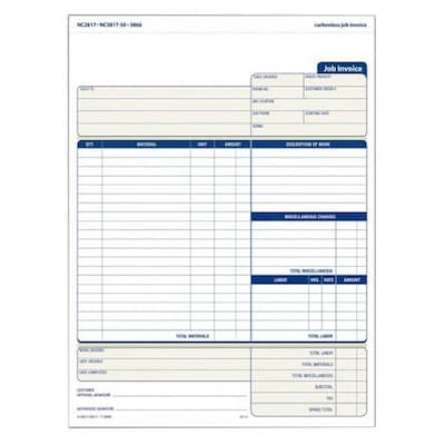 - Carbonless job invoice sets for service industries