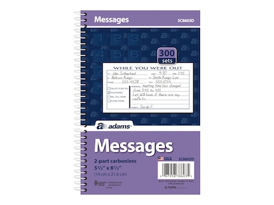Adams Phone Message Pad, 5.5" x 8.5", Ruled, White, 100 Sheets/Pad (SC8603D)