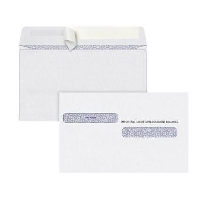 Adams Self Seal Security Tinted Double Window W-2 Tax Form Envelope, White, 100/Pack (DW4ALTPS100)