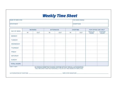 - Track weekly time, including morning, afternoon, and overtime using these time sheets