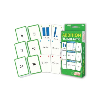 Addition Flash Cards: Teach addition with numbers to 10, to 20 and to 100. 3 flash card sets, 162 cards. Ages 5+.