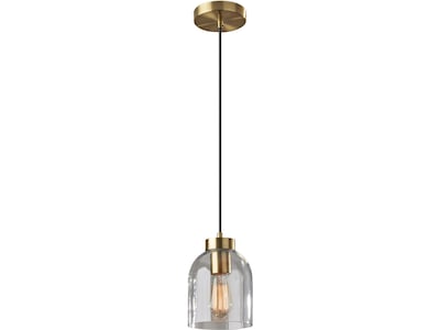 Brighten your space with the mid-century modern styling of the Adesso Bristol pendant light, crafted of clear glass with the base and socket in an antique brass finish. Hang it by itself, or pair it with several more (each sold separately) to create a stunning effect and add illumination to your kitchen, dining area, bedroom, or bathroom. The 7"H dome-shaped shade is made of clear glass, exposing the included decorative 40W vintage Edison bulb. With a 6' black fabric-covered cord, the height of the pendant light can be adjusted to suit the needs of any room, regardless of the ceiling height.
