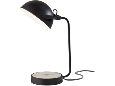 Form meets function with this stylish Adesso Brooks wireless charging desk lamp. The understated gray fabric wireless charging pad is built into the base and features Qi inductive charging technology. Just place your compatible smart device on the pad for simple, cord-free charging and easy access to your phone. The AdessoCharge pad supports 5W charging on contact with the charging pad, which charges your phone from 0% to 100% in just 3-4 hours, depending on your phone model. In addition to this cutting-edge technology, the base also includes a USB port as well as an AC outlet in order to charge multiple devices at once. With an 8"Dia. metal dome-shaped shade and clean styling with a black finish, the 18"H Brooks desk lamp is the perfect lighting and charging addition to your work space or bedroom. Turn this lamp on or off easily using the discreet switch located on the base. It is also powered by a 5' long cord covered in subdued gray fabric.