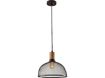 Add a dramatic industrial element to your dining or living space with the Adesso Dale large pendant. A contemporary black metal mesh shade is paired with a natural rubberwood accent, resulting in a modern industrial style with hints of Scandinavian influence. This style looks great with all bulb types. Use a vintage Edison bulb for a soft, mood lighting or an LED bulb for an efficient overhead light. With a 6' black fabric-covered cord, this pendant can be adjusted to fit your ceiling height.