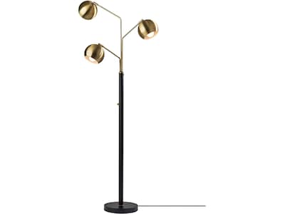 Drawing inspiration from mid-century modern designs, this Adesso Emerson sleek three-armed floor lamp features three 6.5" globe-shaped shades and slender metal body for a minimalist touch. Antique brass arms and shades add warmth and contrast to the black metal pole and base. Place this lamp next to your work space or reading area for a pop of glamour and style. Adjust the arms as well as the shades to direct the light exactly where it is needed. A rotary switch located on the pole controls the light at four settings: one light on, two lights on, three lights on, and three lights off. This allows for multiple brightness settings to satisfy all lighting needs.