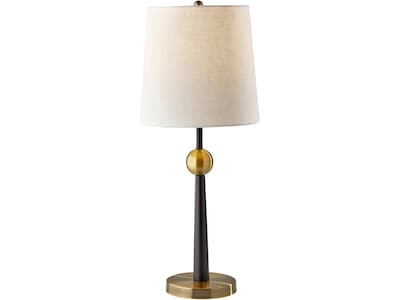 The Adesso Francis table lamp uses mid-century shapes and finishes to create a modern design that will be the highlight in any room. A tall modified drum-shaped shade is made of a high-quality off-white textured fabric. This table lamp takes a standard 100W bulb, providing sufficient ambient lighting where it is needed. Antique brass and black metal finishes make up the body of this stylish 29"H table lamp. A simple on/off switch is located on the socket.