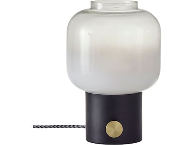 The Adesso Lewis table lamp is a perfect accent piece for the bedside or living room. A beautiful glass shade is white on the bottom and fades into clear glass on the top. A large round knob switch on the matte black metal base turns the lamp on and off. With a compact silhouette, this decorative accent can also be a great addition to a bookcase or shelf.
