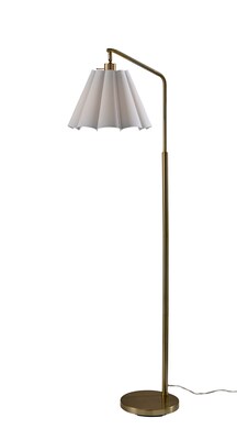 Featuring a sophisticated antique brass finish and a scalloped white fabric shade, this floor lamp adds a touch of warmth and charm to any room.