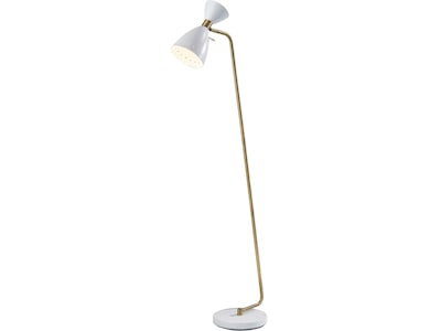 Adesso Oscar 59" Matte White/Antique Brass Floor Lamp with Cone Shade (4283-02)