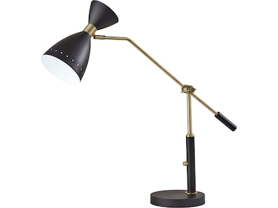 Add some mid-century flare to your workspace or bedroom with the Adesso Oscar adjustable desk lamp. An adjustable oversize lamp shade and extended adjustable arm provide light where it is needed while putting a modern spin on your decor. Black and antique brass finishes are mixed to create the quintessential mid-century style. All Adesso lighting products are either UL- or ETL-listed, meaning that they have been tested and approved to meet the government-regulated safety standards for the USA.