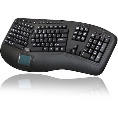 The Adesso 2.4GHz Wireless Ergonomic Touchpad Keyboard offers you an advanced input device with ergonomic design, multifunctional features and a wireless range of up to 30 feet. The design of this keyboard with splitted key zones and gently sloped encourages natural position of hands, wrists, and forearm in maximum comfort for long use. The keyboard also features an integrated touchpad which can take the place of your mouse, making it easier to control the movement of the cursor on your personal computer.