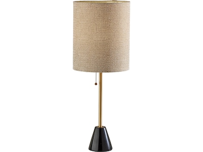 Featuring a rich blend of materials, the Adesso Tucker table lamp adds refinement to desks, nightstands, and accent tables. A tapered cylindrical black marble base is an elegant accent to the simple silhouette of the lamp and supports a long tube with an antique brass finish. Topping the lamp is a beige woven fabric drum shade that softly diffuses the light from a 100W bulb (not included). Complete your decor with the coordinating Tucker floor lamp.