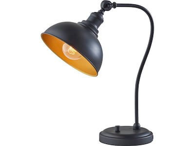 Bring industrial style and convenient charging to your space with this Adesso Wallace desk lamp featuring a sleek matte black metal construction with a round shade, the interior of which is accented with a gold-tone finish. The articulation point at the base of the shade allows you to direct the light wherever it's needed. Complete your space's decor with coordinating pendant lighting, wall and floor lamps. All Adesso lighting products are either UL- or ETL-listed, meaning that they have been tested and approved to meet the government-regulated safety standards for the USA.