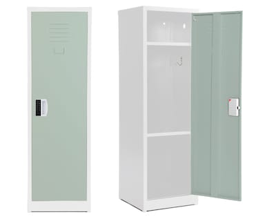 Our 48" Locker for Kids is the ultimate storage solution for children as they are crafted from high-quality steel, ensuring they'll withstand the test of time. Available in vibrant and eye-catching color, our lockers are perfect for any classroom or children's playroom. They provide ample storage space for clothing, shoes, books, and other personal belongings, ensuring your child's items are always organized and secure. Each locker door can be locked with included digital lock, providing the highest level of security for your peace of mind. Transform any locker into a fortress of security with a passcode of your choice, customizable up to 15 characters in length. Easy install of digital lock with provided instructions. Whether you prefer a simple PIN or a complex numeric code, the choice is yours. Our lock is powered by three AAA batteries, to ensure long-lasting performance without the need for frequent replacements. The minimalist design of our lockers makes them suitable for a wide range of spaces. Each is accompanied by coat and bag hooks which make the organization more accessible than ever, encouraging children to be responsible and independent. Additionally, the vented doors ensure proper air circulation, keeping your child's belongings fresh and dry. As a bonus, adorned on every door are metal name plates that are great for locker assignments or personalization as you see fit. We take pride in the fact that assembling our lockers is an absolute breeze. The process is straightforward with our complete instructions and installation guidance. Our lockers cater to the needs of children, teachers, and parents who value quality, functionality, and style. Choose our 48" Locker for Kids for a premium storage solution that is both practical and fashionable.