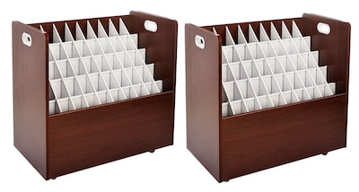 AdirOffice 50-Slot Mobile Roll File, 28.5"H x 30"W x 15.75"D, Mahogany, 2/Pack (626-MA-2PK)