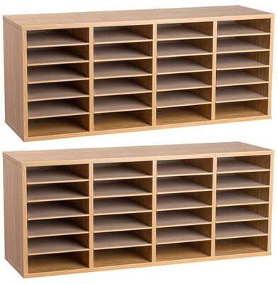 AdirOffice 500 Series 24-Compartment Literature Organizers, 39.3" x 11.8", Medium Oak, 2/Pack (500-24-MEO-2PK)
