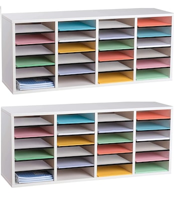 AdirOffice 500 Series 24-Compartment Literature Organizers, 39.3" x 11.8", White, 2/Pack (500-24-WHI-2PK)