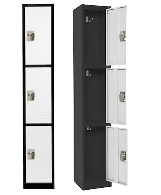 - Three-Compartment Locker Storage: This 3-tier locker is divided into three separate compartments, allowing multiple users to securely store personal belongings within one vertical locker
