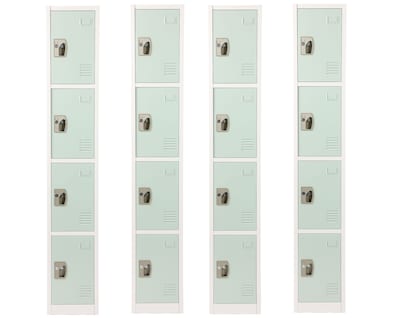 - Durable Steel Construction – Built with a sturdy steel frame and side panels, this set of four, 4-Tier locker offers exceptional strength and longevity and the rubber feet at the base provide stability and protect floors from scratches