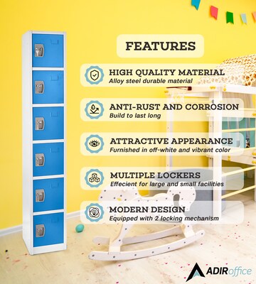 The AdirOffice ensemble of vibrant, colorful storage lockers is the perfect solution to ending boring ambiance anywhere secure storage is desired. Especially attractive for competitive businesses such as yoga, taekwondo, and other self-improvement classes, this colorful locker will also be warmly welcomed in school corridors, golf clubs, sports franchises, public safety, first responder, and similar organizations where secure storage for participants is essential. Moms and dads can select single or stacked AdirOffice storage lockers to keep kids' clutter off the floor (or secure their own stuff).