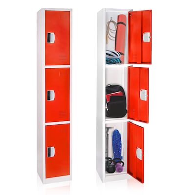 AdirOffice 72"H 3-Tier Red Storage Locker (ADI629-203-RED-DL)