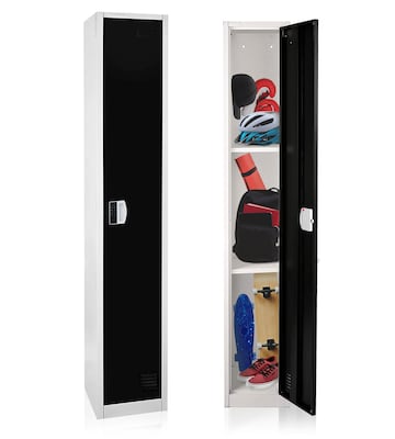 The AdirOffice Steel Single Compartment Tier digital lock Storage Locker will be warmly welcomed in school corridors, golf clubs, sports franchises, public safety, first responder and similar organizations where secure storage for participants is essential. AdirOffice storage lockers keep clutter off the floor and secure items within. This is a single tier compartment storage locker with a vent for air flow. The storage locker includes 2-shelves and 2-hooks to store items. Assembly required with provided hardware. Each locker door can be locked with included digital lock, providing the highest level of security for your peace of mind. Transform any locker into a fortress of security with a passcode of your choice, customizable up to 15 characters in length. Easy install of digital lock with provided instructions. The AdirOffice locker also contains a slot for names or numbers for personal or public use extends locker utility.