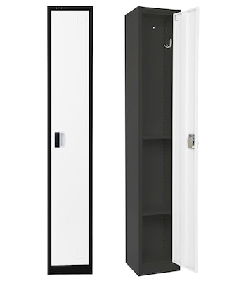- Sides of the locker are furnished in a black color, accented by vibrant white door color