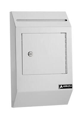 Designed for indoor or sheltered areas, the AdirOffice drop box for secure storage is an organization's answer when seeking secure, temporary storage for cash, checks, and important documents. Its easily cleaned neutral pebble textured finish fits anywhere inside or outside in sheltered areas. Wherever positioned, its heavy-gauge steel construction, pick-resistant lock, reinforced door, and drop slot configuration combine to protect contents until accessed by authorized personnel.