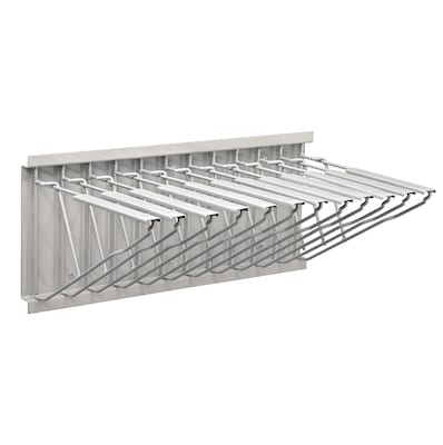Mounted at a height of your preference, this rack not only grants you convenient access to your documents, but it also saves your drawer and cabinet space. The rack includes 12 pivot brackets that swing widely and freely from side to side to easily reveal the files contents and can accommodate up to 12 hanging clamps (sold separately). Ideally, rack should be installed on solid walls or on wall studs.