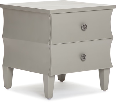 This storage side table has both classic styling and functionality in one. Featuring two large drawers that can store your bedside reading material or headphones, there is no end to the uses this solid wood constructed side table can provide. Whether you choose to use it in the living room, bedroom, or home office, this charming end table has classic styling and soft grey color that you can be proud to show off. This side table with two easy-sliding drawers is the perfect end table for whatever area of the house you have in mind.