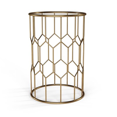 Add a touch of refined glamour and sophistication to any room in your home or office with the addition of this round accent table. No more dealing with bulky end tables with sharp corners; this gold side table's sleek design meshes perfectly with any existing space. The tempered glass top is combined with a brushed gold base frame to provide a modern feel. Your eyes will be drawn toward the intricate geometric design. A openwork frame keeps the end table sturdy even when it's loaded with plants, books, or decor. No assembly required. Simply unbox and set it up to transform the aesthetic of any room in your house within seconds.