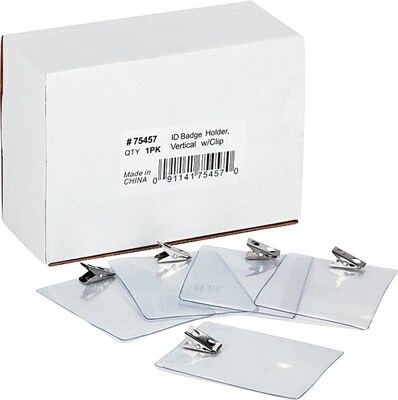 The ideal choice for ID cards and name badges, these ADVANTUS ID Badge Holders are made of durable, long-lasting vinyl. Sized to hold 3 x 4 inch inserts, these vertical badge holders are each pre-punched for chain or clip use (clips included). Badges or ID cards will be securely protected from the elements and easy to access for swiping at security checkpoints. Available in a box containing 50 badge holders, these are an excellent choice for small or large office use.