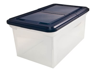 Keep paperwork safe in storage with this Advantus extra-capacity letter file-tote clear/navy storage box with lid.