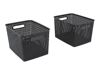 Advantus Large Weave Plastic Bin, Black, 2/Pack (AVT40328)