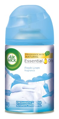Eliminate unwanted odors from your home or commercial spaces and keep them spelling fresh with this Air Wick Freshmatic Ultra refill. This 6.17-ounce refill is compatible with an Air Wick Freshmatic Ultra automatic dispenser, which releases a fine mist at low, medium, and high frequencies. Each refill delivers up to 60 days of subtle, continuous fragrance to effectively infuse multiple spaces with the familiar scent of clean laundry with the Air Wick Essential Oils Fresh Linen scent.