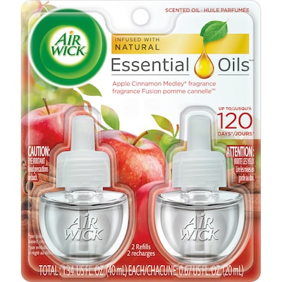 Suffuse any room with the pleasant scent of baked apples and cinnamon by using these refills in an Air Wick scented oil warmer. Each of these 0.67-ounce Air Wick oil warmer refills releases its inviting, autumnal aroma for up to 45 days.