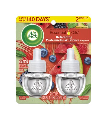Air Wick Scented Oil Warmer Refill, Fresh Watermelon & Berries Scent, 0.67 oz., 2/Pack (62338-02597)