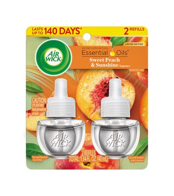 Air Wick Scented Oil Warmer Refill, Sweet Peach & Sunshine Scent, 0.67 oz., 2/Pack (62338-01715)