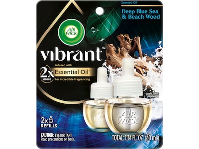 Air Wick Vibrant Scented Oil Warmer Refill, Deep Blue Sea & Beach Wood, 0.67 Fl. Oz., 2/Pack (62338-00123)