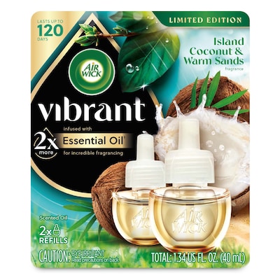 Air Wick Vibrant Scented Oil Warmer Refill, Island Coconut & Warm Sands, 0.67 fl. oz., 2/Pack (62338-01050)