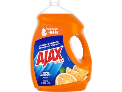 Boost your dishwashing experience with the Ajax Ultra liquid dish soap. Ajax has combined your favorite Orange scent with the efficacy that fights grease and stuck-on stains. This variant's distinctive triple action ensures a superior cleaning experience every time. Soap formula cuts grease, leaves dishes sparkling clean, and contains an odor-fighting fragrance technology. This dish soap not only leaves your dishes sparkling clean, but easily dissolves stuck-on grease with a delightful burst of citrus freshness. This dishwashing liquid is made with naturally inspired fragrances, zero parabens, and no phosphates. The power of the Ajax Ultra goes beyond the sink. This versatile kitchen dish soap allows you to pretreat laundry, wash tires, and wipe down appliances. Leave the grime to the Ajax Ultra so you can get back to what really matters.