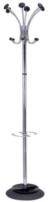 Alba Chrome floor silver coat stand can be used for hanging coats, umbrellas and other items with 1 rotative head with 6 double coat pegs and an built in umbrella holder.