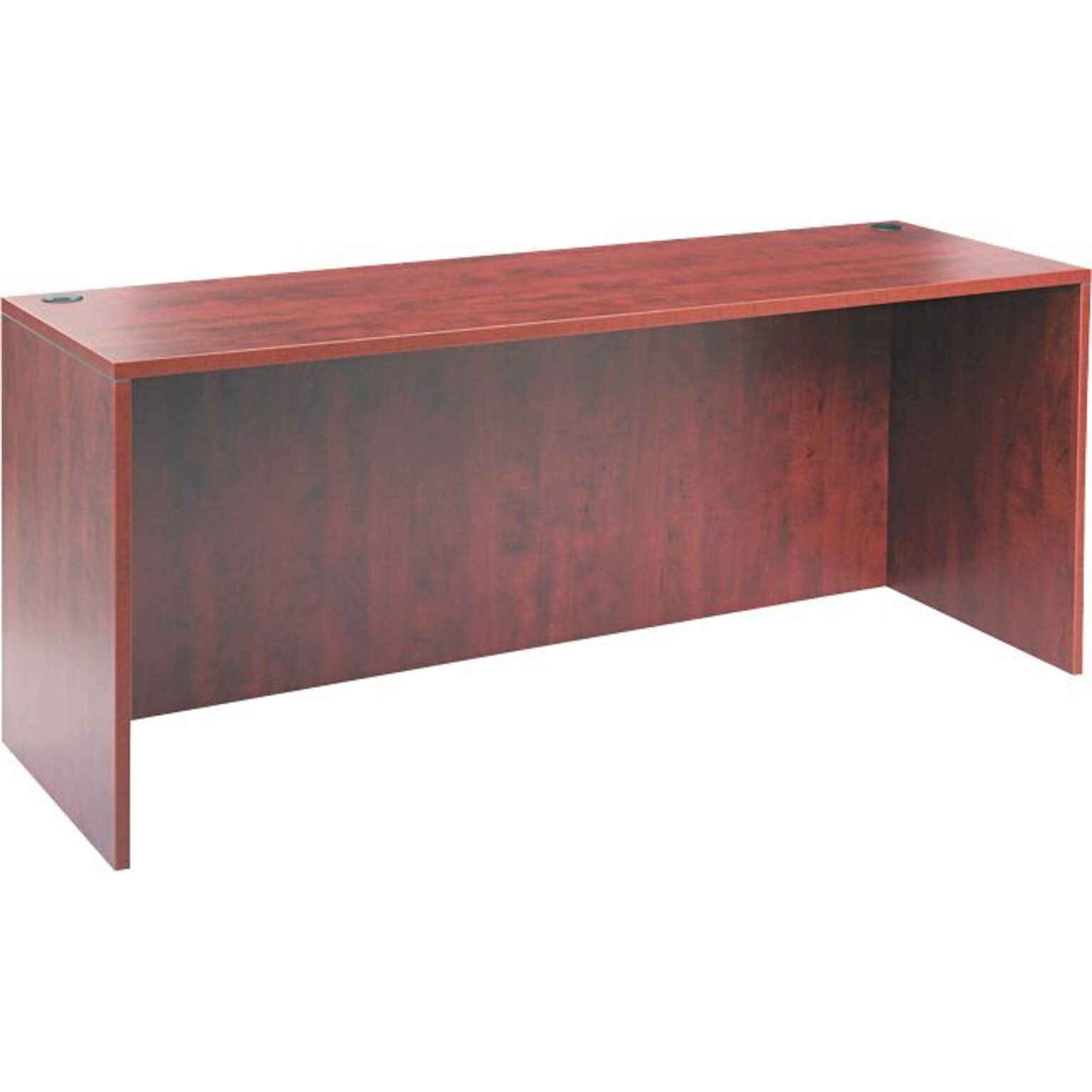 Mahogany laminate worksurface with charcoal-colored side panels and legs for a contemporary look