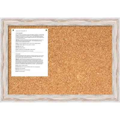 This cork message board features a distressed, creamy whitewashed real wood frame with a distinctive high outer edge design. This message board makes the perfect complement for the country rustic or shabby chic look. Artist: Title: Alexandria Whitewash Cork Board - Medium Product type: Cork Board Frame: 2 whitewash distressed with tan accents Board Dimensions: 24.00 in. W x 16.00 in. H Outside Frame Dimensions: 27.25 in. W x 19.25 in. H