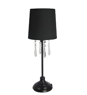 Simple Designs Table lamp with black shade and hanging acrylic beads features painted metal base for durability and is ideal for living rooms, bedrooms or office.