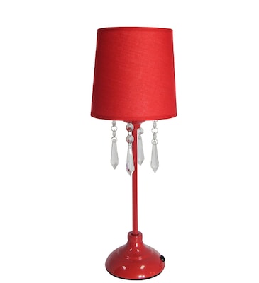 Simple Designs Table lamp with red shade and hanging acrylic beads features painted metal base for durability and is ideal for living rooms, bedrooms or office.