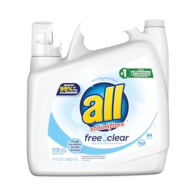 All Ultra Free Clear Liquid Detergent, Unscented, 141 oz Bottle, 4/Carton